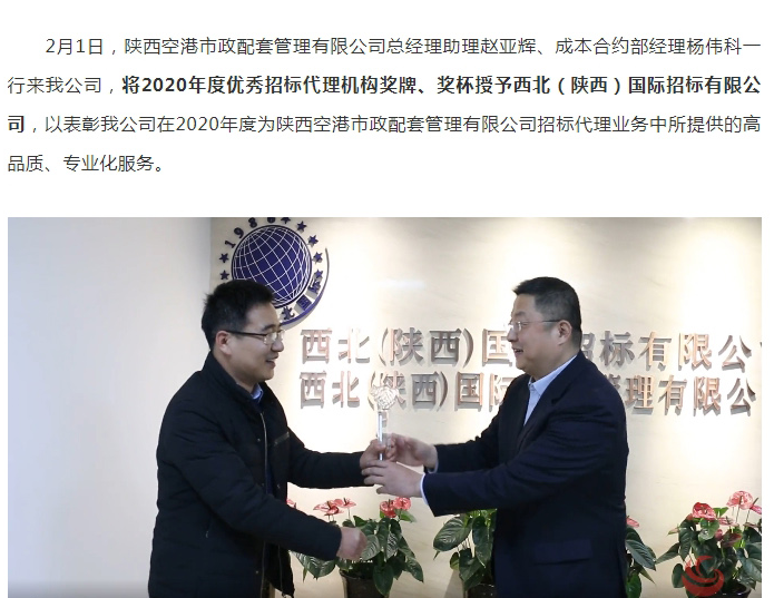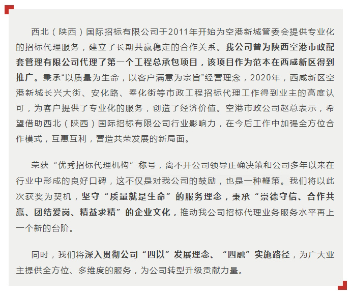 我公司榮獲“優(yōu)秀招標(biāo)代理機(jī)構(gòu)”榮譽(yù)稱號(hào)