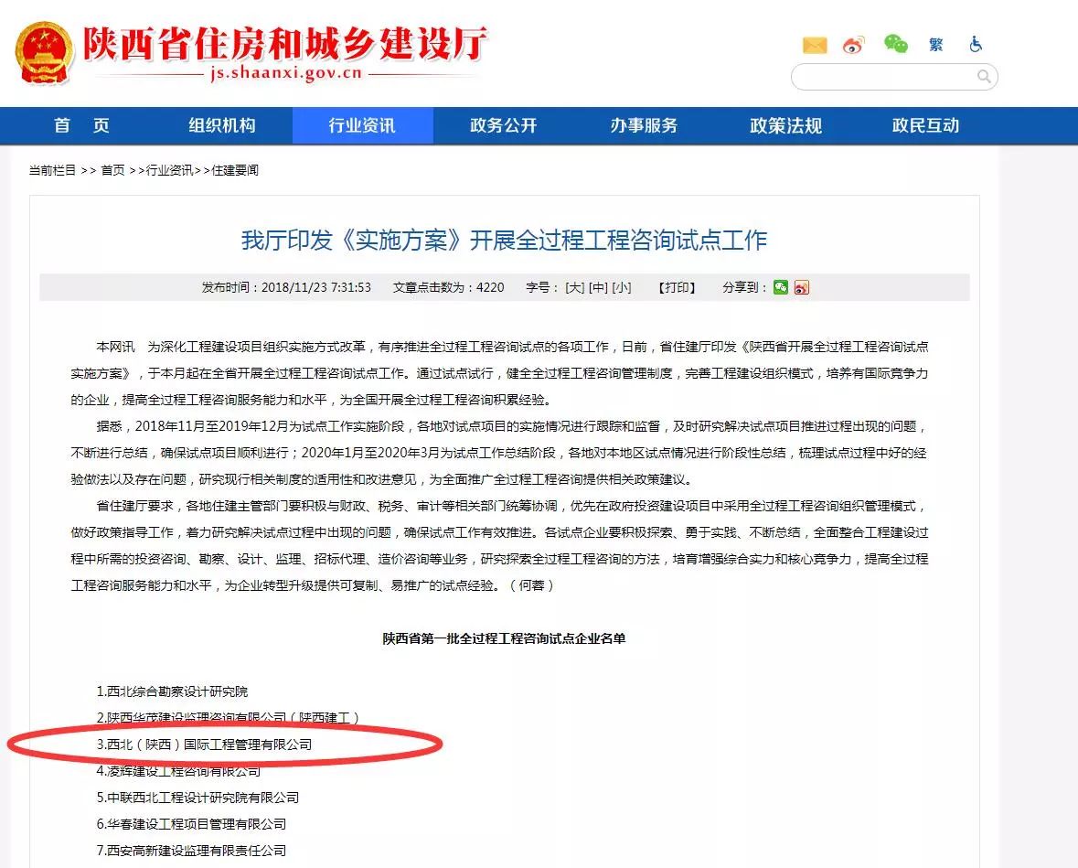 西北(陜西)國(guó)際工程管理有限公司入選陜西省住建廳第一批全過(guò)程工程咨詢?cè)圏c(diǎn)企業(yè)名單
