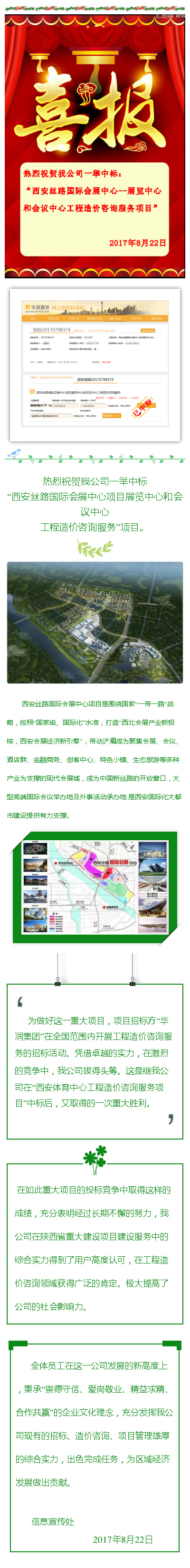 熱烈祝賀我公司一舉中標(biāo)“西安絲路國際會展中心項(xiàng)目展覽中心和會議中心工程造價(jià)咨詢服務(wù)”項(xiàng)目