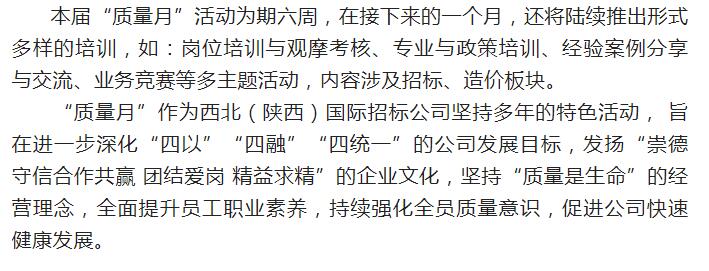 西北國際招標(biāo)公司第二十三屆“”質(zhì)量月”培訓(xùn)活動報(bào)道(第三周)