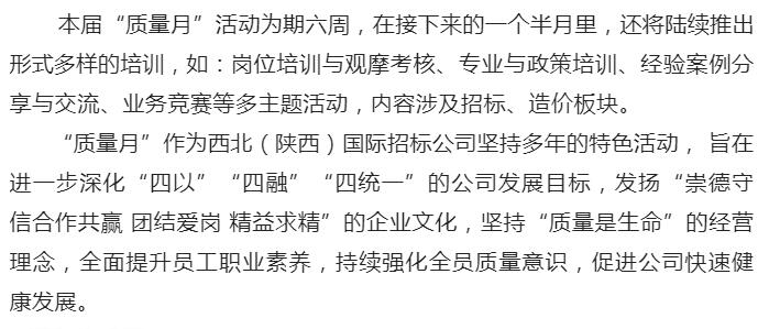 西北(陜西)國際招標有限公司第二十三屆“質量月”活動正式開啟