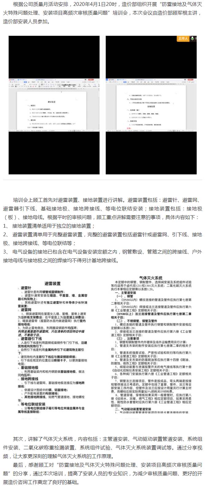 造價部組織開展“防雷接地及氣體滅火特殊問題處理、安裝項目高頻次審核質量問題”培訓會