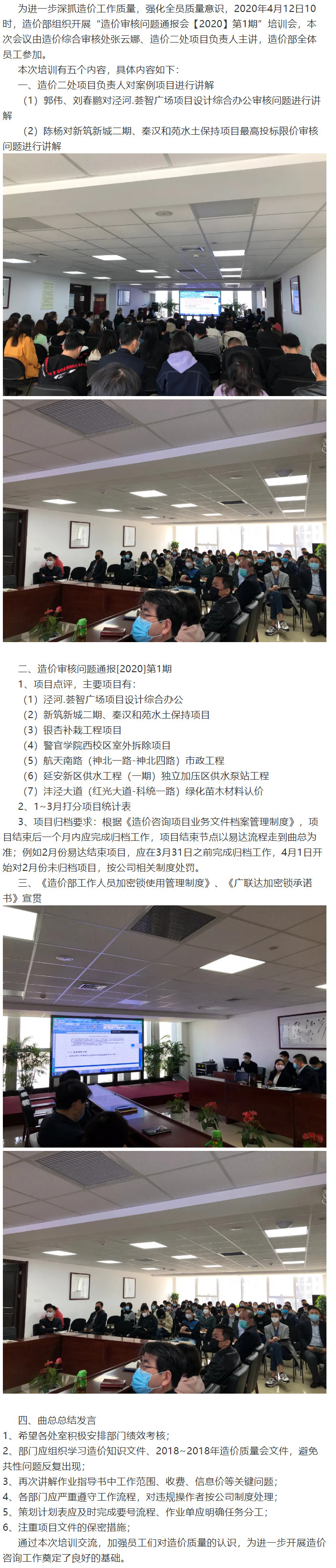 公司造價(jià)部組織開展“造價(jià)審核問題通報(bào)會(huì)【2020】第1期”培訓(xùn)會(huì)