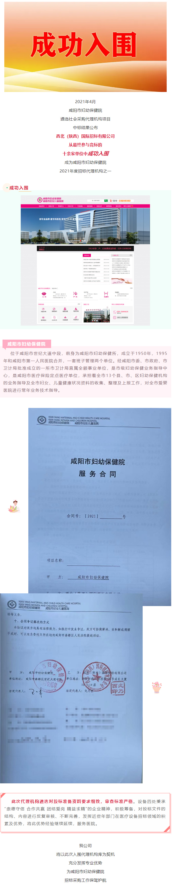 我公司成功入圍咸陽(yáng)市婦幼保健院代理機(jī)構(gòu)庫(kù)