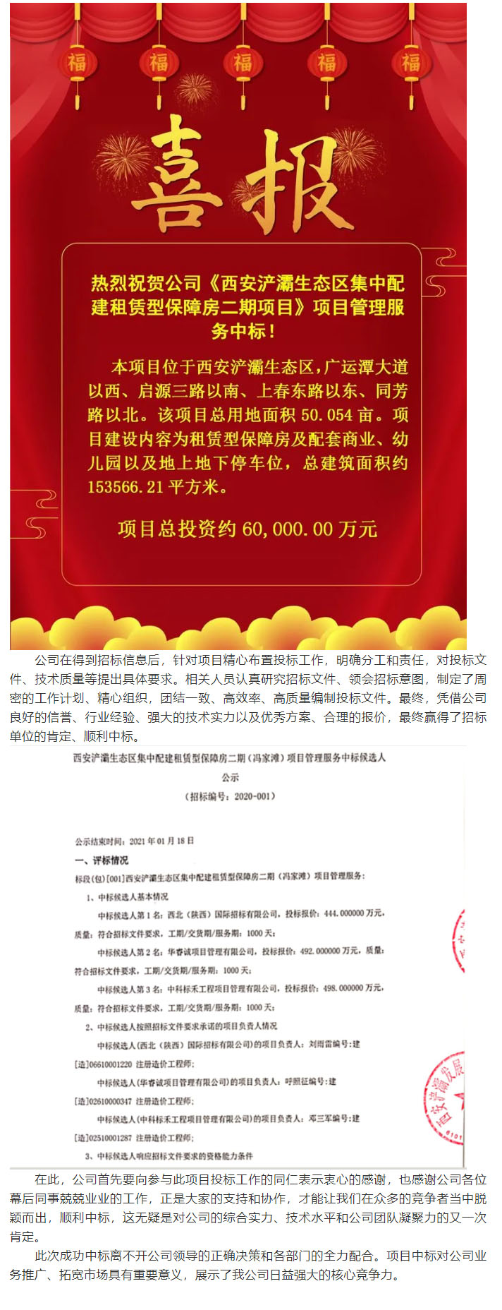 喜報!我公司中標(biāo)西安浐灞生態(tài)區(qū)集中配建租賃保障房二期項目管理服務(wù)