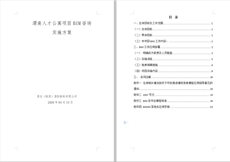 我公司于2020年4月成功中標(biāo)渭南高新區(qū)東區(qū)人才公寓項(xiàng)目全過(guò)程工程咨詢(xún),是我公司首例包含BIM技術(shù)應(yīng)用的全過(guò)程工程咨詢(xún)項(xiàng)目。BIM中心對(duì)成立以來(lái)的首個(gè)項(xiàng)目格外重視,在項(xiàng)目前期充分準(zhǔn)備,工作有序開(kāi)展。在鞏總、王東總的指導(dǎo)下,完成了部分階段性工作。疫情期間,BIM中心成員多方搜集資料,深入學(xué)習(xí),不斷調(diào)整思路,多次在綜合管理部?jī)?nèi)部、渭南項(xiàng)目部通過(guò)視頻會(huì)議的形式,修改討論,完成了實(shí)施方案從0到1的編制工作,明確了本項(xiàng)目的總體目標(biāo)與工作范圍,對(duì)BIM應(yīng)用做出了準(zhǔn)確的規(guī)劃與部署。