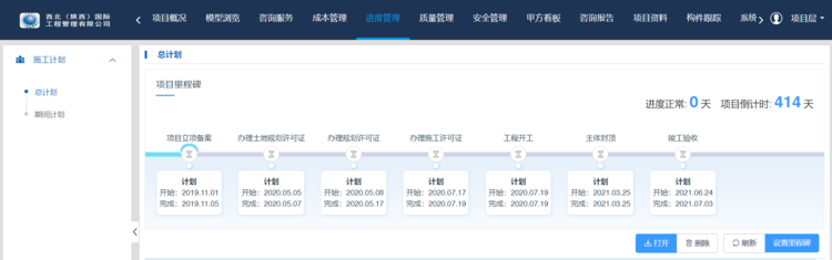 目前BIM中心已安排有序駐場(chǎng)。駐場(chǎng)后初步搭建了5D平臺(tái),創(chuàng)建網(wǎng)頁(yè)端、項(xiàng)目云空間。目前已經(jīng)將網(wǎng)頁(yè)端權(quán)限開(kāi)放至相關(guān)領(lǐng)導(dǎo)及部分業(yè)主代表,項(xiàng)目初期充分吸收各方意見(jiàn),嘗試探索工作的深度廣度。通過(guò)和廣聯(lián)達(dá)公司深入溝通,成功在網(wǎng)頁(yè)端添加施工總計(jì)劃、設(shè)置項(xiàng)目里程碑,使得項(xiàng)目計(jì)劃與重要時(shí)間節(jié)點(diǎn)一目了然。