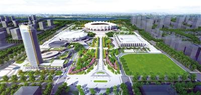 五月的西安港,天朗氣清。主體育場橡膠跑道加緊鋪設(shè),游泳跳水館的菱形柱吊裝正緊鑼密鼓進(jìn)行,體育館正進(jìn)行裝修收尾,奧體中心中央廣場石材已鋪裝完成。