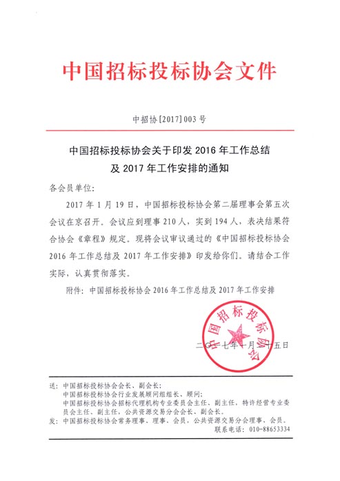 中國招標投標協(xié)會2016年工作總結及2017年工作安排