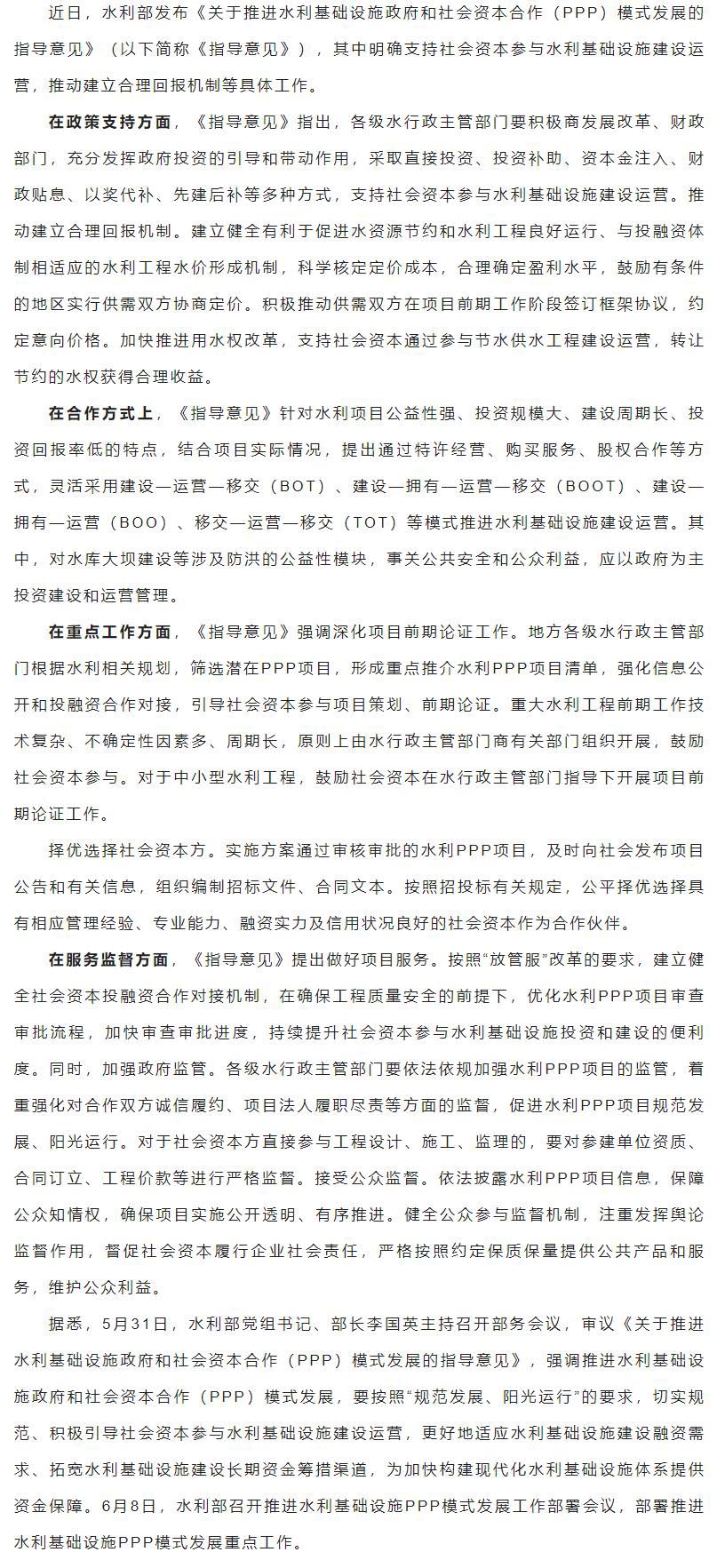 水利部|支持社會(huì)資本參與水利基礎(chǔ)設(shè)施PPP項(xiàng)目建設(shè)運(yùn)營